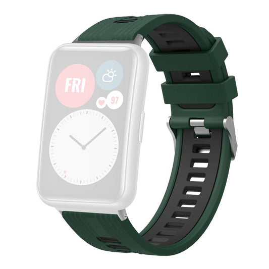 For Huawei Watch Fit New xDfind Dual Color Silver Buckle Silicone Watch Band(Dark Green+Black)
