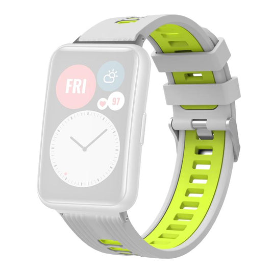 For Huawei Watch Fit New xDfind Dual Color Silver Buckle Silicone Watch Band(Light Green+Grass Green)