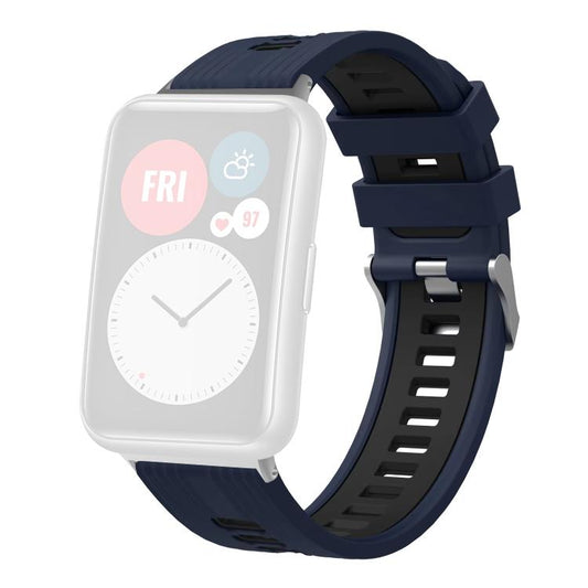 For Huawei Watch Fit New xDfind Dual Color Silver Buckle Silicone Watch Band(Midnight Blue+Black)