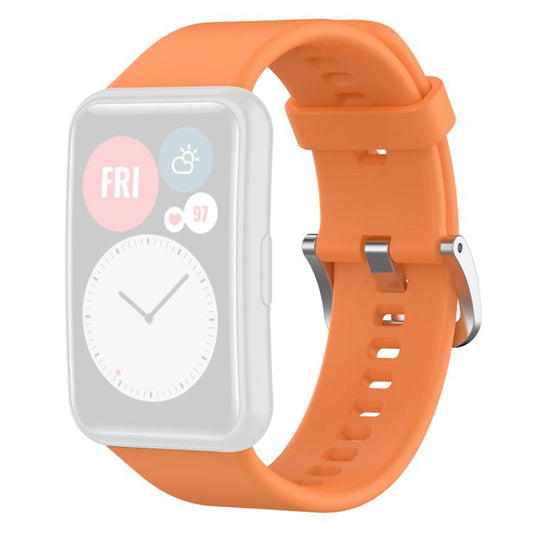 For Huawei Watch Fit New xDfind Solid Color Silver Steel Buckle Silicone Watch Band(Orange)