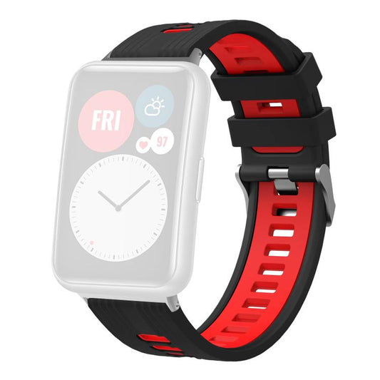 For Huawei Watch Fit New xDfind Dual Color Silver Buckle Silicone Watch Band(Black+Red)