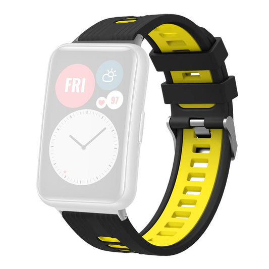 For Huawei Watch Fit New xDfind Dual Color Silver Buckle Silicone Watch Band(Black+Yellow)