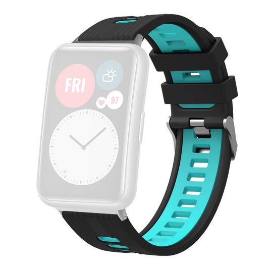 For Huawei Watch Fit New xDfind Dual Color Silver Buckle Silicone Watch Band(Black+Cyan)