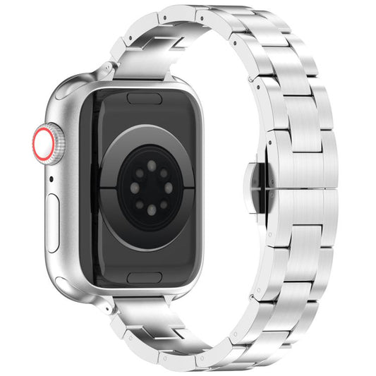 For Apple Watch 42mm / 41mm / 40mm / 38mm Slim Waist Three-bead Butterfly Buckle Titanium Alloy Watch Band(Silver)