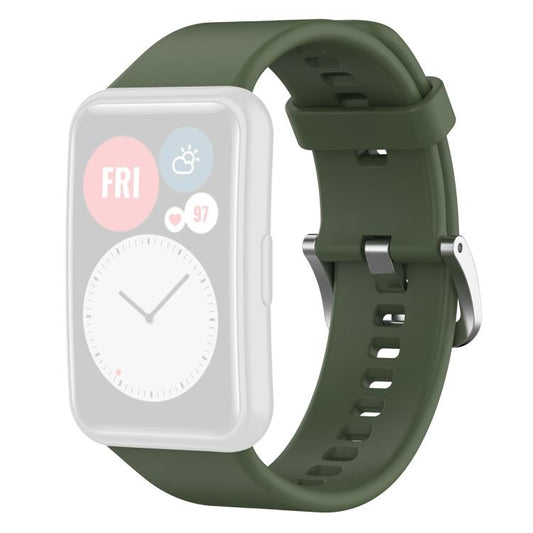 For Huawei Watch Fit New xDfind Solid Color Silver Steel Buckle Silicone Watch Band(Dark Green)