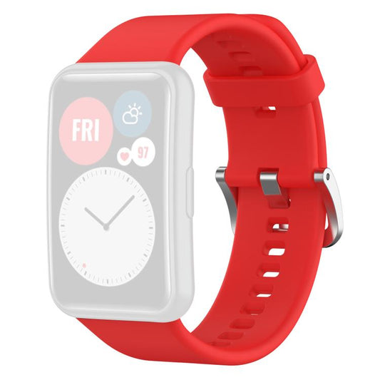 For Huawei Watch Fit New xDfind Solid Color Silver Steel Buckle Silicone Watch Band(Red)
