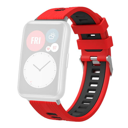 For Huawei Watch Fit New xDfind Dual Color Silver Buckle Silicone Watch Band(Red+Black)
