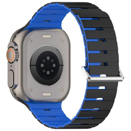 For Apple Watch 46mm / 49mm / 45mm / 44mm Melodica-Style Magnetic Dual-Color Silicone Watch Band(Black Blue)
