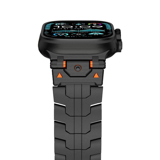 For Apple Watch 42mm / 41mm / 40mm / 38mm Stainless Steel Iron Man Butterfly Buckle Metal Watch Band(Black Orange)