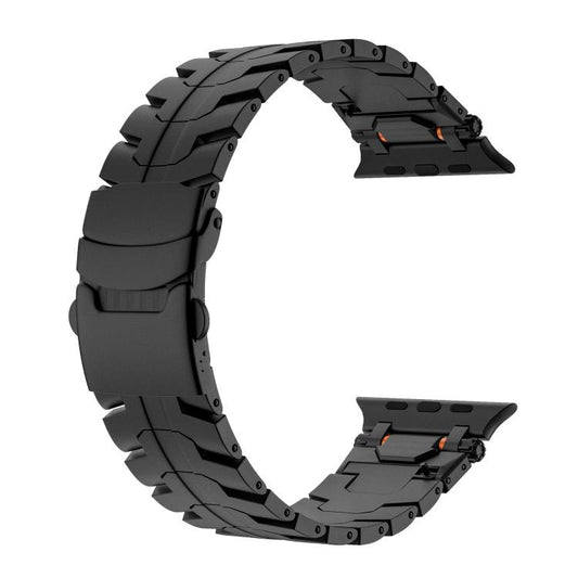 For Apple Watch 46mm / 49mm / 45mm / 44mm Stainless Steel Iron Man Safety Buckle Metal Watch Band(Titanium Color Orange)