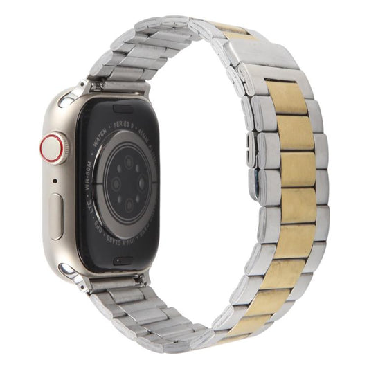 For Apple Watch 42mm / 41mm / 40mm / 38mm Three-beads Magnetic Steel Watch Band(Silver Gold)