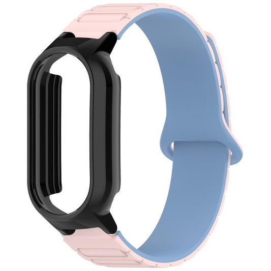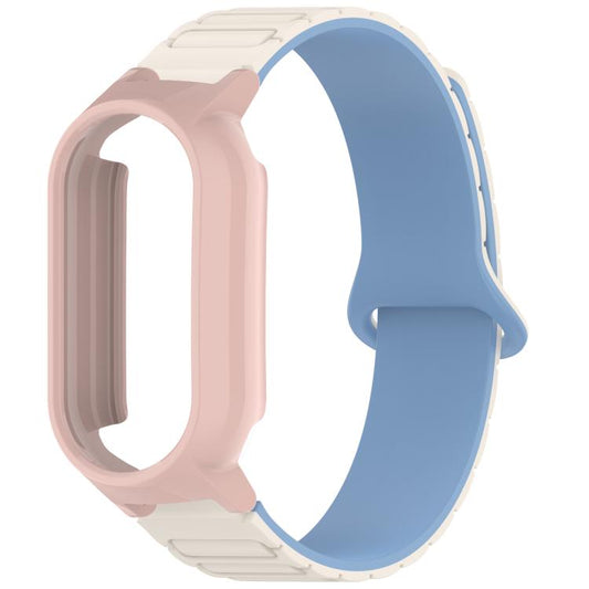 For Xiaomi Mi Band 8 / 8 NFC Watch Case Integrated I-Shaped Magnetic Silicone Watch Band(White Blue+Pink)