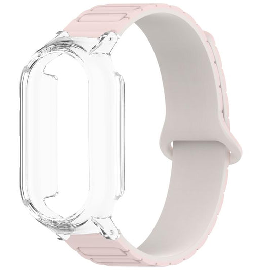 For Xiaomi Mi Band 8 / 8 NFC PC Watch Frame I-Shaped Magnetic Silicone Watch Band(Pink Blue+Transparent)