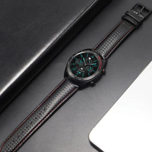 For Huawei / Samsung Galaxy Watch Universal Watch Strap Quick Release Carbon Fiber Leather Watch Band, Size: 20mm(Red Line)