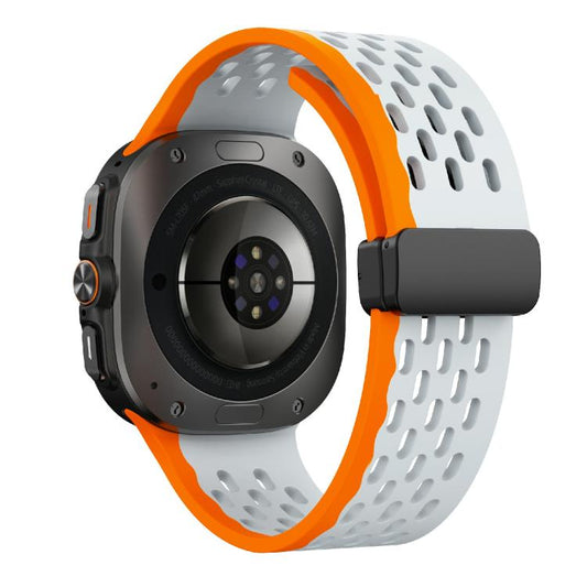 For Samsung Galaxy Watch Ultra 47mm / Ultra 2025 Kalebol Mesh Magnetic Silicone Watch Strap(Wild Path Gray Orange)