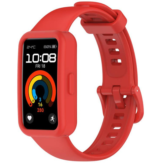 For Huawei Band 10 / 9 / 8 Color Button Watch Case Integrated Silicone Watch Band(Red)