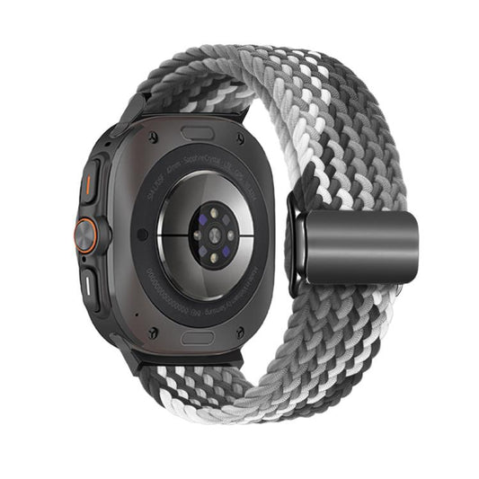For Samsung Galaxy Watch Ultra 47mm / Ultra 2025 Kalebol Braided Loop Magnetic Black Buckle Watch Band(Official Rainbow)