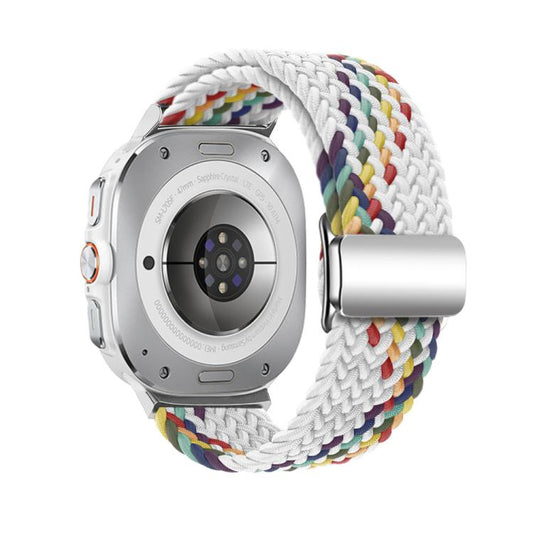 For Samsung Galaxy Watch Ultra 47mm / Ultra 2025 Kalebol Braided Loop Magnetic Silver Buckle Watch Band(White Rainbow)