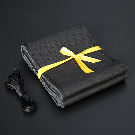 Car Genuine Leather Hand-stitched Adaptation Steering Wheel Cover, For Steering Wheel Size 37-38cm(Black)