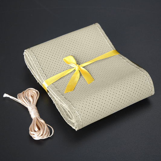 Car Genuine Leather Hand-stitched Adaptation Steering Wheel Cover, For Steering Wheel Size 37-38cm(Beige)