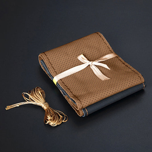 Car Universal Genuine Leather Hand-stitched Steering Wheel Cover(Light Brown)