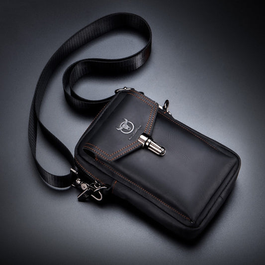 BULL CAPTAIN 076 Retro Leather Mobile Phone Waist Bag Men Leather Messenger Bag(Black)