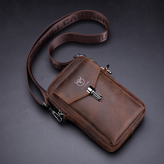 BULL CAPTAIN 020 Men Small Mobile Phone Waist Bag Crossbody Multi-Function Chest Bag(Brown)