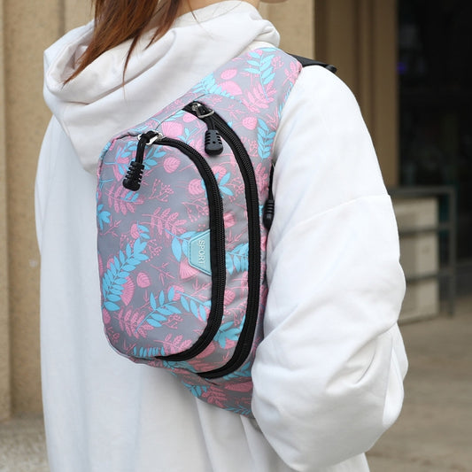 Ladies Sports Running Waist Bag Outdoor Leisure Cashier Wallet, Size: 10 inch(Flowers Gray)