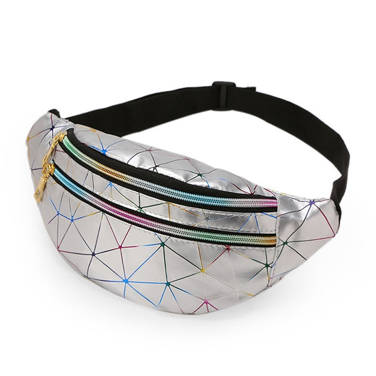 Laser Pattern PU Leather Waist Bags Women Fanny Pack Single Shoulder Bag(Silver)