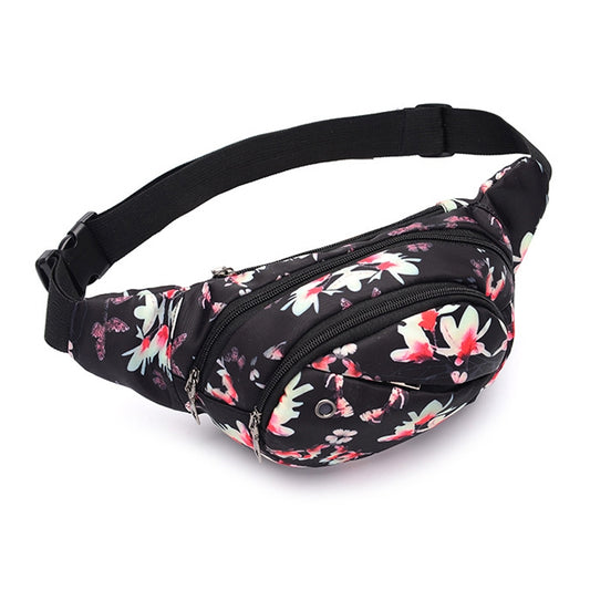 Color Printing Multi-function Casual Pockets Ladies Outdoor Purse Waist Bag(winter Jasmine Pattern)