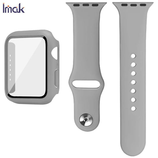 For Apple Watch SE 1/2/3/Series 4/5/6 44mm imak Integrated Case and Film with Silicone Strap(Gray)