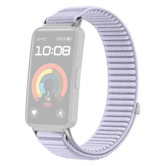 For Huawei Band 10 / 9 / 8 xDfind Woven Nylon Hook And Loop Fastener Metal Interface Watch Band(Light Purple)