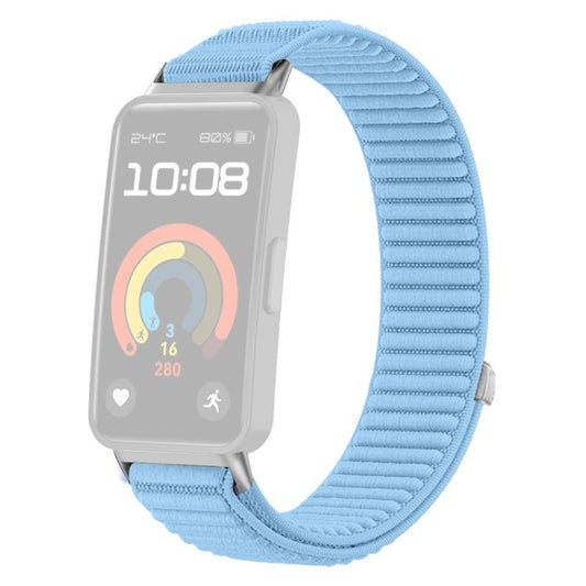 For Huawei Band 10 / 9 / 8 xDfind Woven Nylon Hook And Loop Fastener Metal Interface Watch Band(Island Blue)