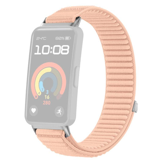 For Huawei Band 10 / 9 / 8 xDfind Woven Nylon Hook And Loop Fastener Metal Interface Watch Band(Milkshake Pink)