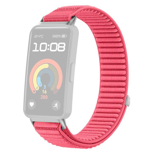For Huawei Band 10 / 9 / 8 xDfind Woven Nylon Hook And Loop Fastener Metal Interface Watch Band(Red)