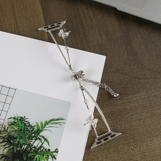 For Apple Watch 46mm / 49mm / 45mm / 44mm Copper-Inlaid Butterfly Zircon Bracelet Watch Band(Siver)