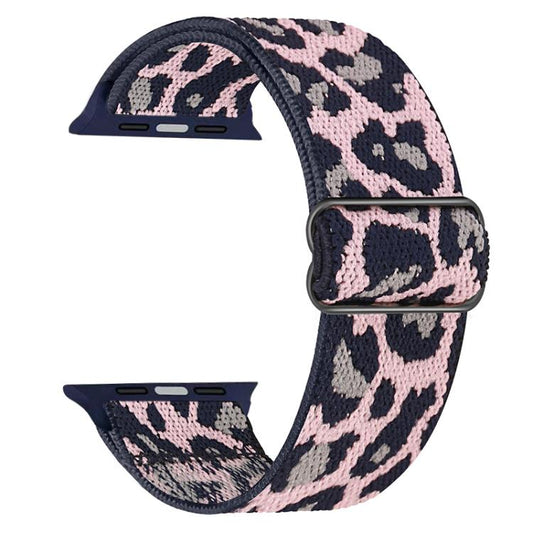 For Apple Watch 42 / 44 / 45 / 46 / 49mm xDfind Adjustable Slide Buckle Elastic Nylon Watch Band(Blue Leopard)