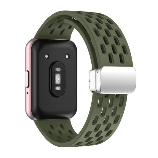 For Samsung Galaxy Fit 3 xDfind Mesh Magnetic Silver Buckle Silicone Watch Strap(Army Green)