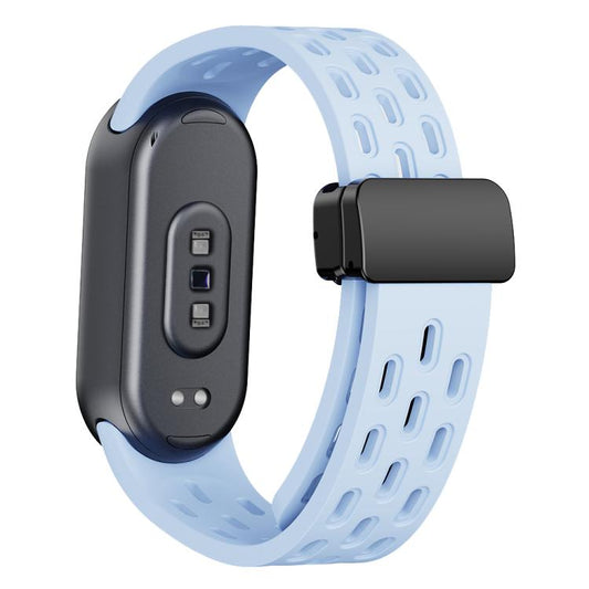 For Xiaomi Smart Band 10 / 9 / 8 xDfind Holes Magnetic Black Buckle Silicone Watch Band(Light Blue)