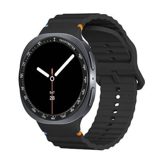For Samsung Galaxy Watch8 44mm Speed Bezel and Wavy Grain Stitched Color Buckle Silicone Watch Band(Black Black)Regular price $17.00 USDRegular priceUnit price per-