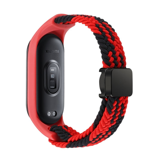 For Xiaomi Mi Band 7 / 6 / 5 / 4 / 3 Nylon Braided Loop Magnetic Buckle Integrated Watch Band(Red Black)