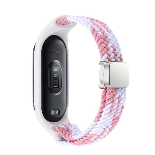 For Xiaomi Mi Band 7 / 6 / 5 / 4 / 3 Nylon Braided Loop Magnetic Buckle Integrated Watch Band(Pink White)