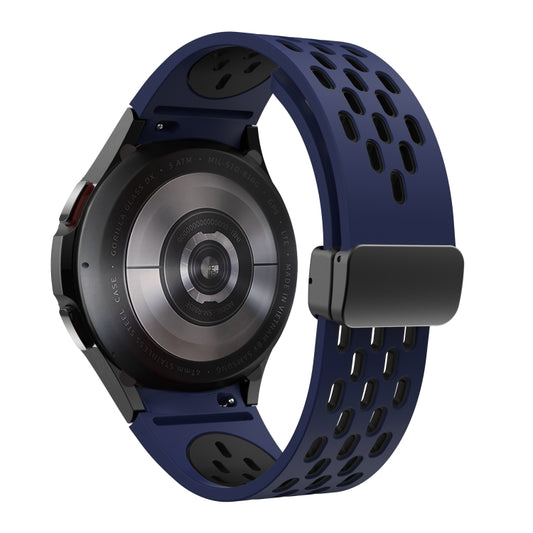 For Samsung Galaxy Watch 7 40 / 44mm Two Color Magnetic Folding Black Buckle Silicone Watch Band(Midnight Blue Black)