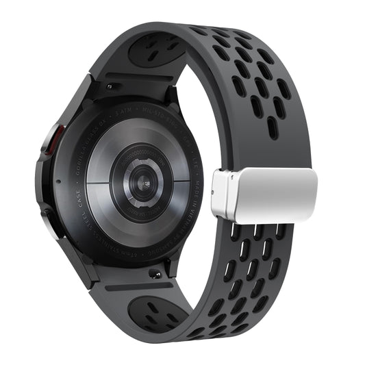 For Samsung Galaxy Watch 4 Classic 42 / 46mm Two Color Magnetic Folding Black Buckle Silicone Watch Band(Coal Black)