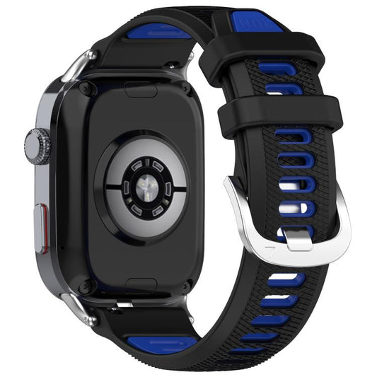 For Huawei Watch D2 Silver Metal Head Two Color Silicone Watch Band(Black+Blue)