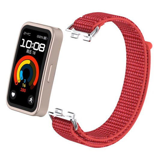 For Huawei Band 10 / 9 / 8 Metal Connector Nylon Loop Hook and Loop Fastener Watch Band(Red)