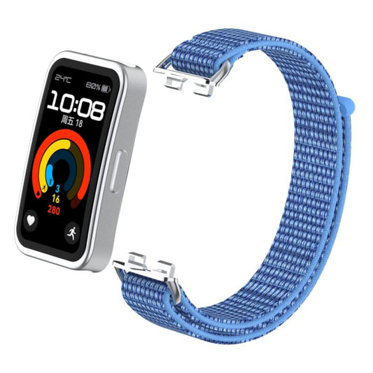 For Huawei Band 10 / 9 / 8 Metal Connector Nylon Loop Hook and Loop Fastener Watch Band(Cape Blue)