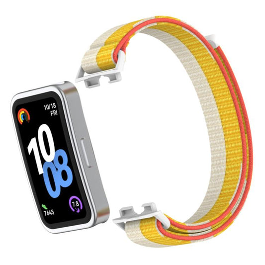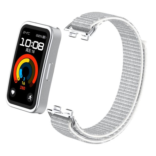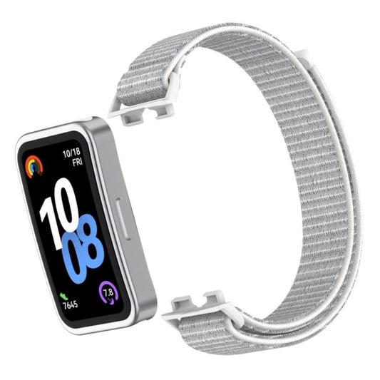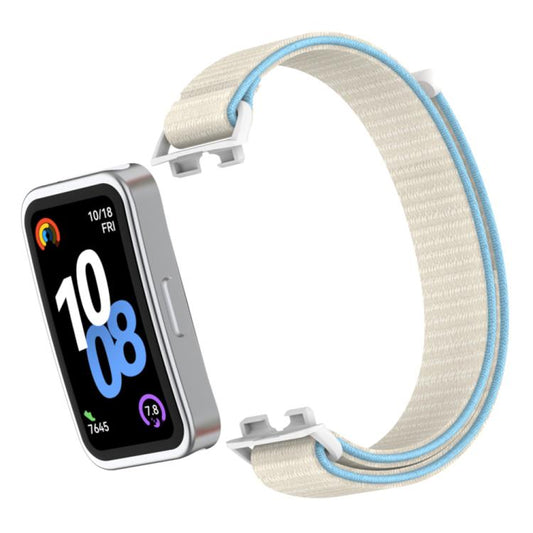 For Huawei Band 10 / 9 / 8 Plastic Connector Nylon Loop Hook and Loop Fastener Watch Band(Millet White)