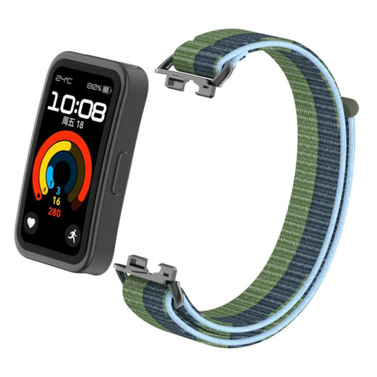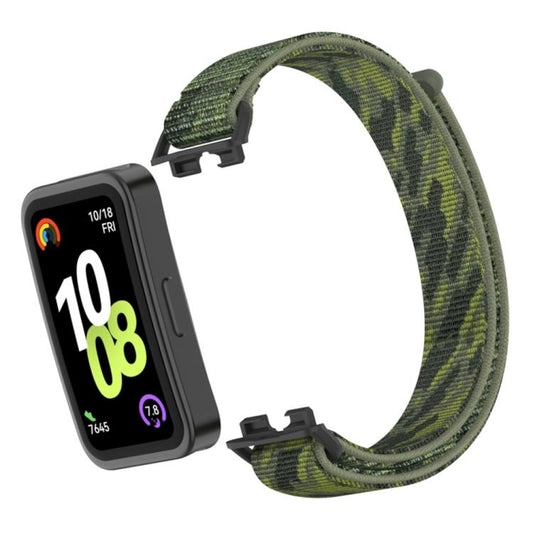 For Huawei Band 10 / 9 / 8 Plastic Connector Nylon Loop Hook and Loop Fastener Watch Band(Camouflage Green)