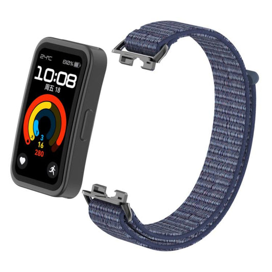 For Huawei Band 10 / 9 / 8 Metal Connector Nylon Loop Hook and Loop Fastener Watch Band(Deep Blue)